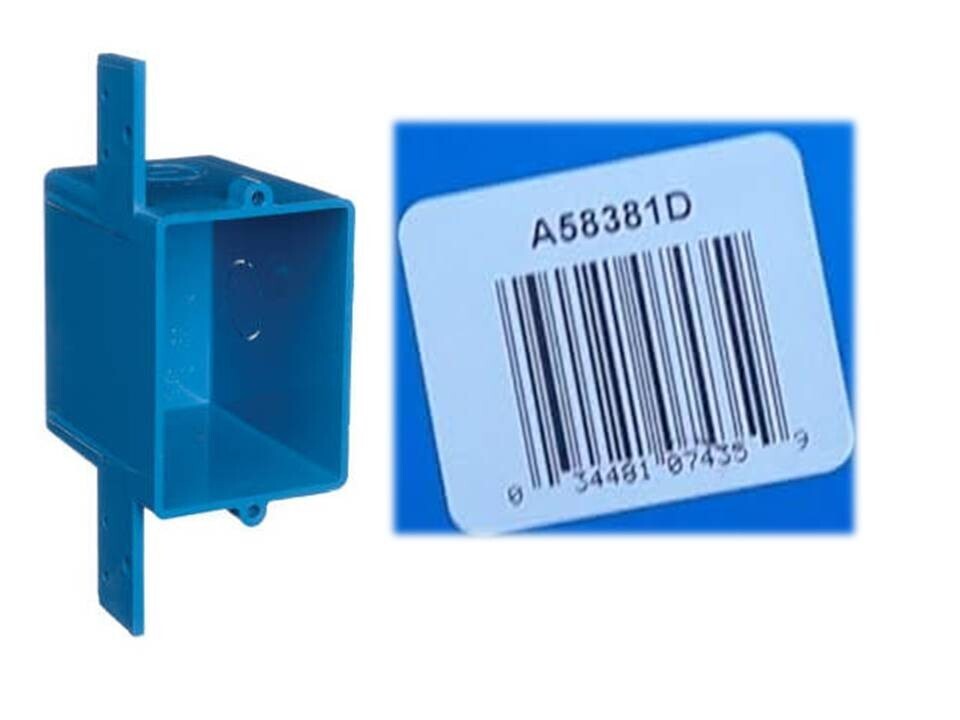 Carlon A58381D-CAR Outlet Box, 1 -Gang, 3 -Knockout, 1/2 in Knockout, PVC, Blue, Bracket Mounting
