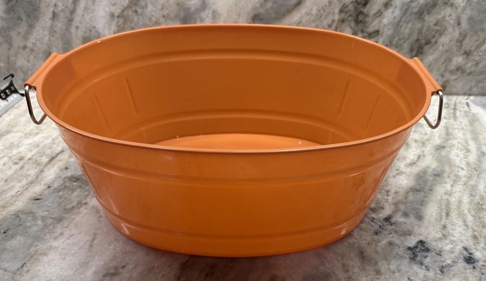 - Oval Orange Plastic Storage Tub Ice Bucket W Collapse Handles 4.5Hx11.5Lx9.25W”