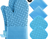 Oven Mitts and Pot Holders 6Pcs Set, Kitchen Oven Glove High Heat Resistant 500 Degree Extra Long Oven Mitts and Potholder with Non-Slip Silicone Surface for Cooking (Sky Blue)
