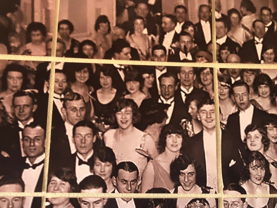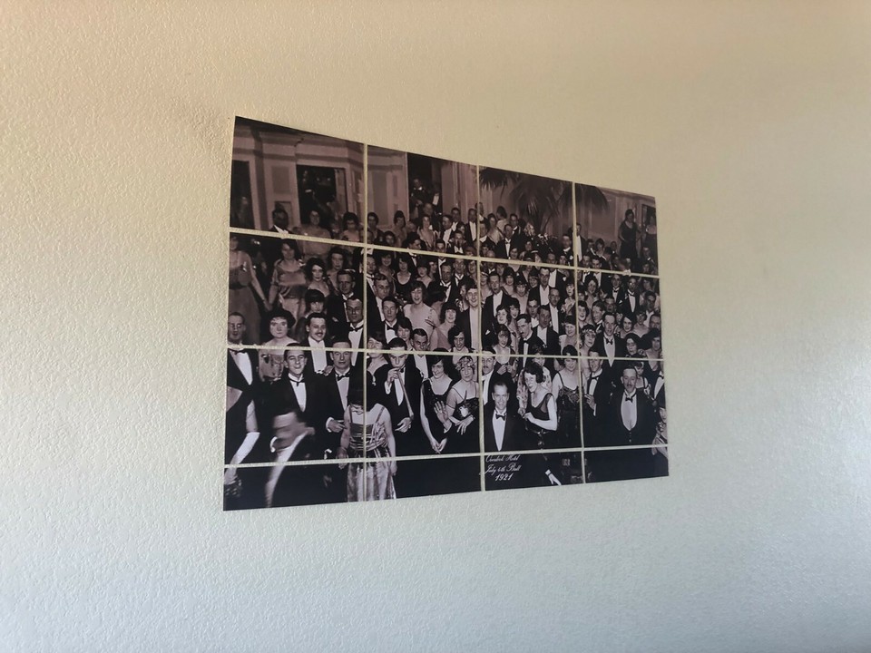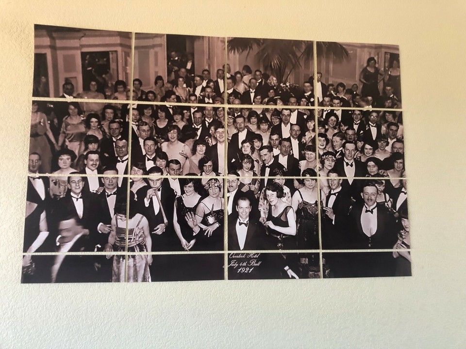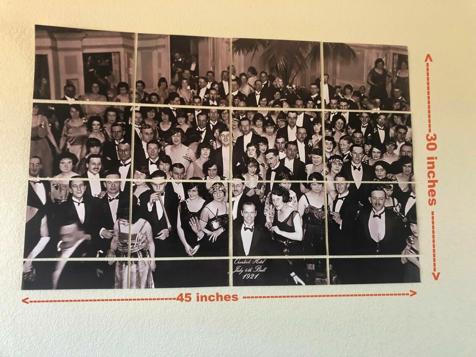 This is a multi- page poster, also known as Rasterbation. These photos make up a larger photo. This is the Overlook Hotel photo from the last scene in the movie The Shining. This is a 16 page photo that comes out to 45 x 30 in with 1/2in spacing.