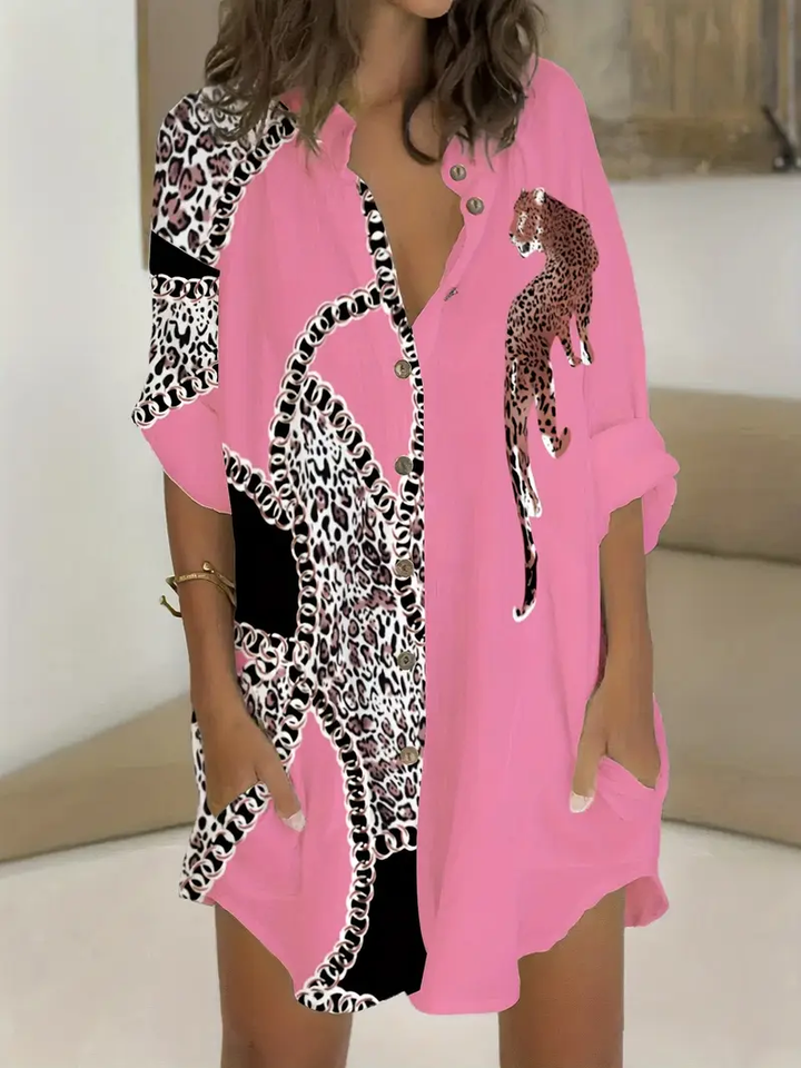 Embrace your wild side with this Oversize Leopard Women's Shirt Dress, a bold fashion statement that's both playful and chic.