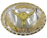 - Oversized Golden Bull Head Silver Metal Belt Buckle