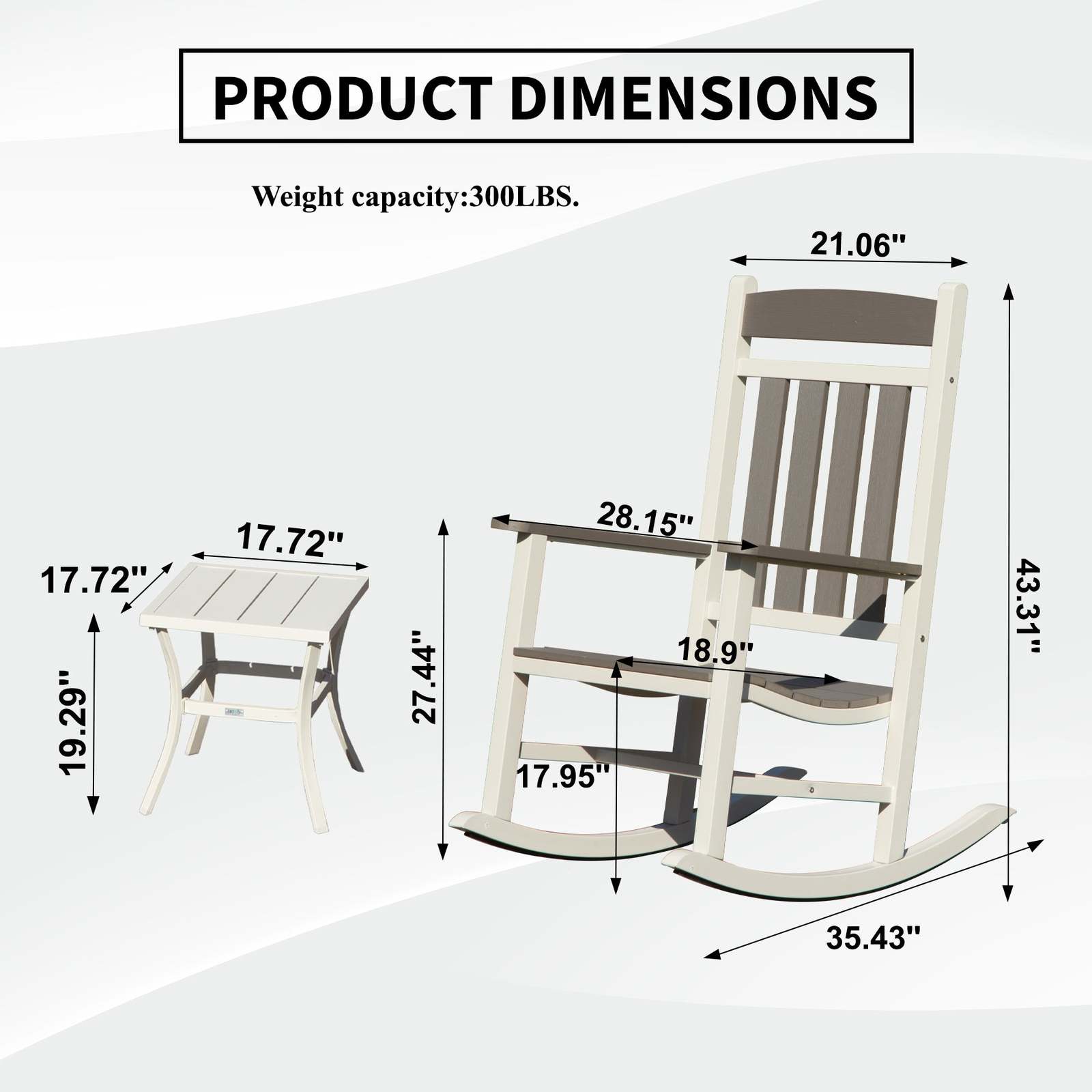 - Oversized Outdoor HDPE Rocking Chairs Set of 3 - Patio Porch Durable