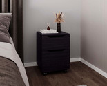 black nightstand, modern nightstand, bedside table, small storage cabinet, rolling nightstand, two-drawer nightstand, mobile nightstand, contemporary nightstand, black wood furniture, office storage unit, compact bedside table, home organization, modern furniture, minimalist nightstand, mobile office storage, bedroom essentials, sleek black nightstand, durable bedside storage, stylish office furniture, rolling drawer cabinet, space-saving nightstand.