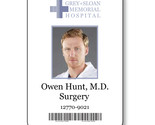 This listing is for a name badge tag FOR A HALLOWEEN COSTUME PROP FOR OWEN HUNT FROM GREYS ANATOMY TV SERIES. Your badge will arrive with a SAFETY PIN fastener on the back. This badge is an RECTANGLE SHAPED WITH A WHITE BACKGROUND ROUNDED EDGES AND MEASURES APPROX. 2" x 3". This badge is printed in full color with a clear overlay that protects the print for a durable long lasting badge. YOUR BADGE WILL SHIP WITHIN 24 HOURS FREE FIRST CLASS MAIL, US ONLY. No hidden charges or set up fees. We also carry a premium econo BLANK name badge line for businesses with high turn over employees (these badges can be personalized with crystal clear labels.)