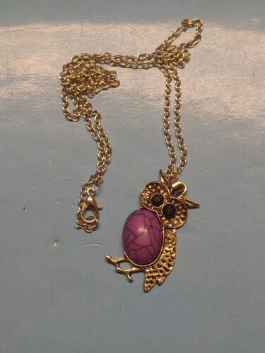 - Owl Pendant Necklace With Purple Stone Black Crystal Eyes