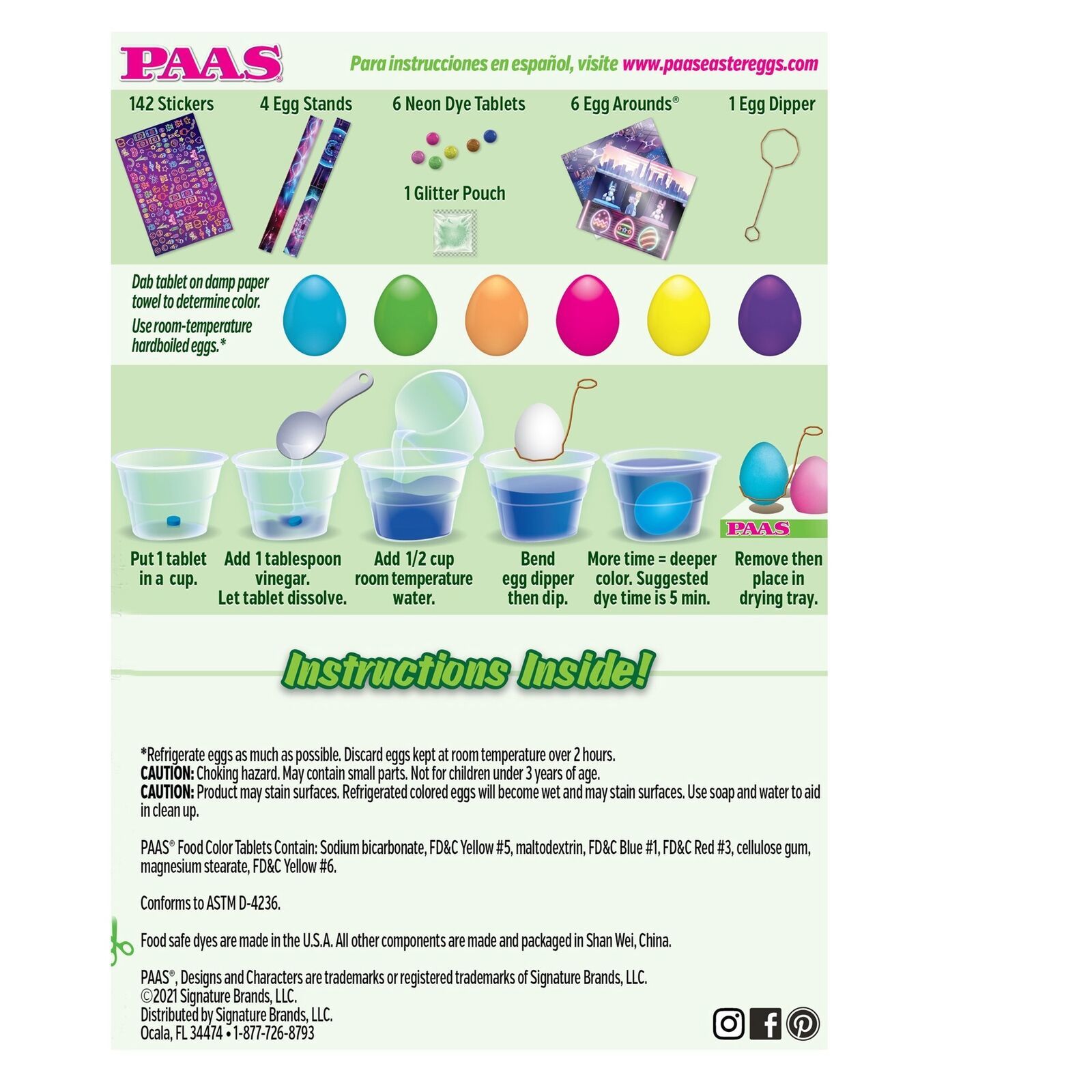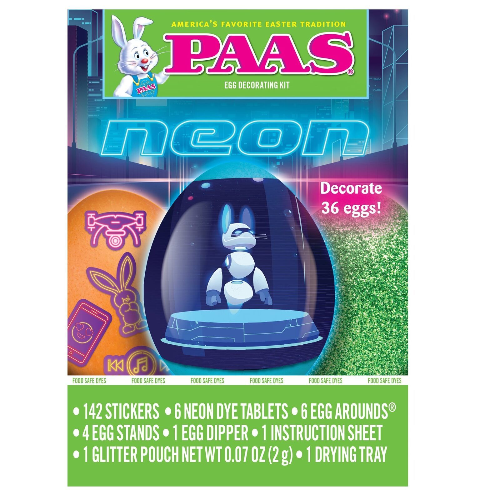 PAAS Neon Easter Egg Decorating Kit Includes includes everything you need to decorate your Easter Eggs with your family . Decorates 36 Eggs