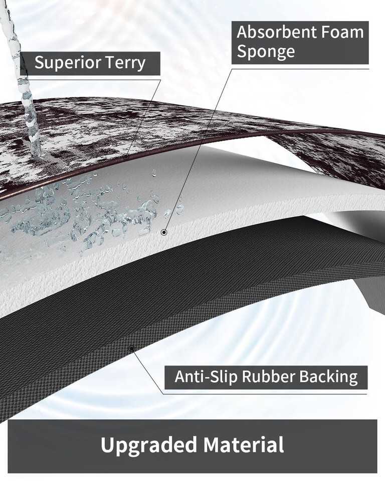 Easy Care Machine Washable: Simply machine wash water absorbing bath mat in cold water with a laundry bag, avoiding bleach,tumble dry at low speed. For daily maintenance, you can use a vacuum cleaner, robot vacuum, broom, or water hose. The upgrated durable terry retains its color, texture, and integrity after repeated washing, ensuring your long-term satisfaction.