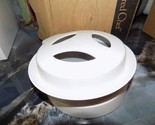 The PAMPERED CHEF Close and Cut Bagels, Chicken, Fruits #1118 is a white plastic cutter/slicer made in Taiwan. This kitchen tool is designed by the renowned brand Pampered Chef and is perfect for cutting bagels, chicken, fruits, and other items with ease and precision. The convenient box packaging makes it easy to store and transport, making it a versatile addition to any kitchen.