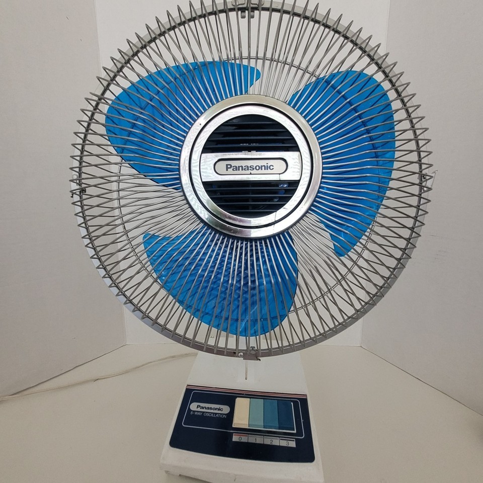 - PANASONIC 3-speed 12" Electric Desk Fan 5-Way Oscillation F-1208 Blue Blades VTG
