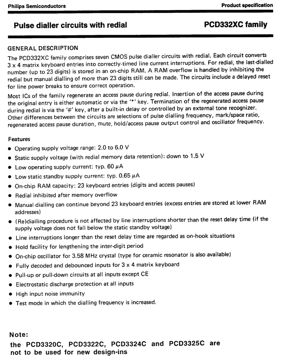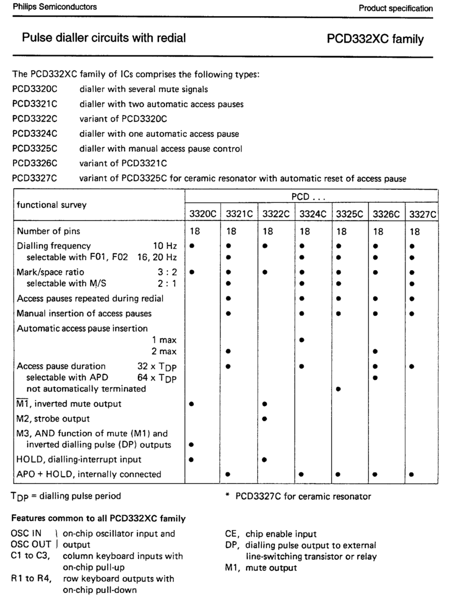 - PCD3321P/S1 PHILIPS Telephone Pulse Dialer with 2 Automatic Access Pauses DIP-18