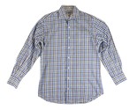 PETER MILLAR Men's M Blue Gray Plaid Check Long Sleeve Button Down Dress Shirt