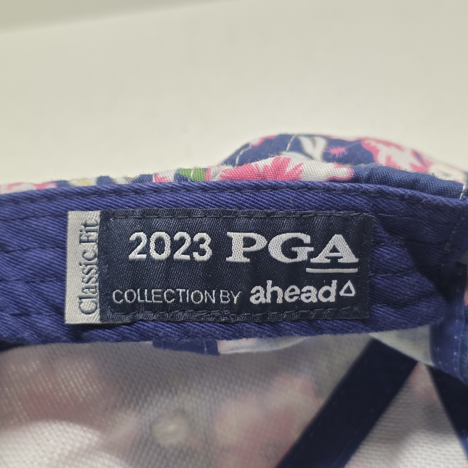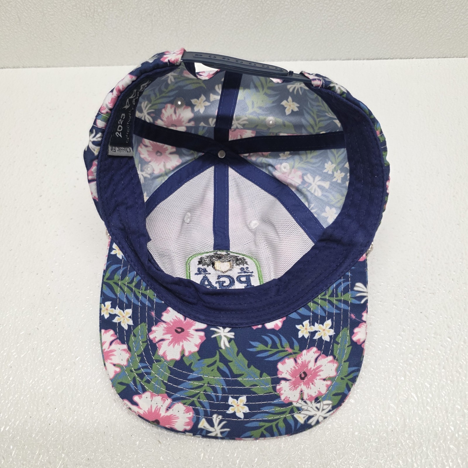 PGA Golf 2023 Oak Hill Floral Blue Pink Snapback Hat By Ahead. Images show actual item that will ship.
