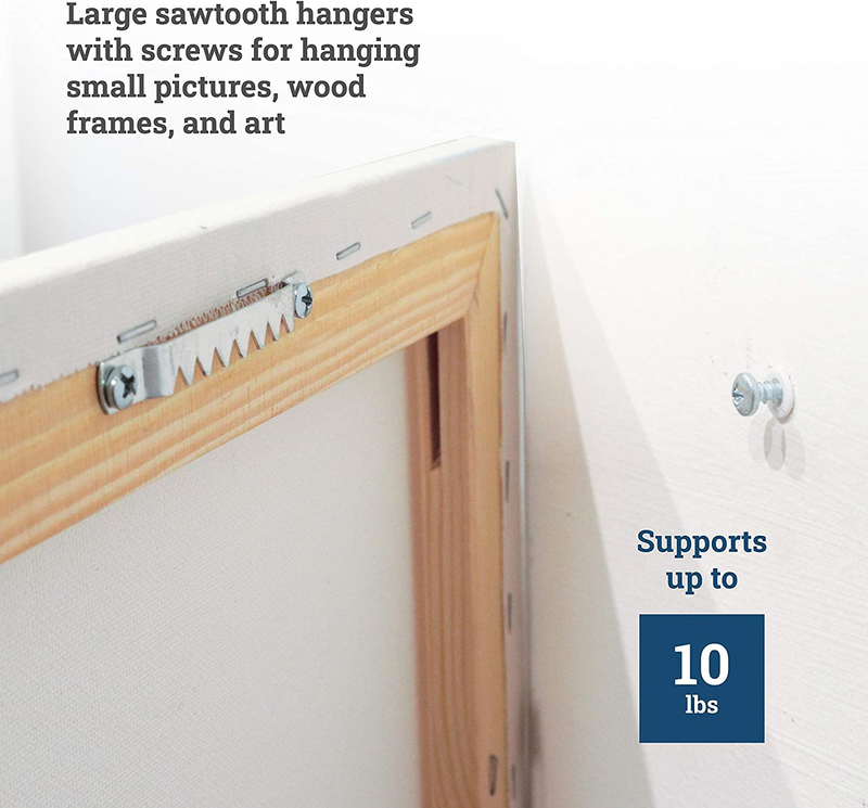 Multi-Use Hardware: Ideal picture frame wall mount and canvas hanger solution. Includes picture hanging brackets for all frame sizes, small sawtooth picture hangers for lightweight items, and canvas picture hangers for artwork.