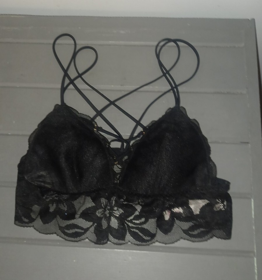 - PINK Victoria's Secret Strappy Black Wireless Bralette Lace Trim Size Small