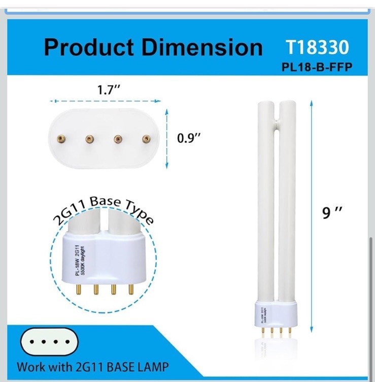 - PL18W U/V/A Black Blue Light Bulb2G11 base 4 pin InlineF18W BL Twin Tube H