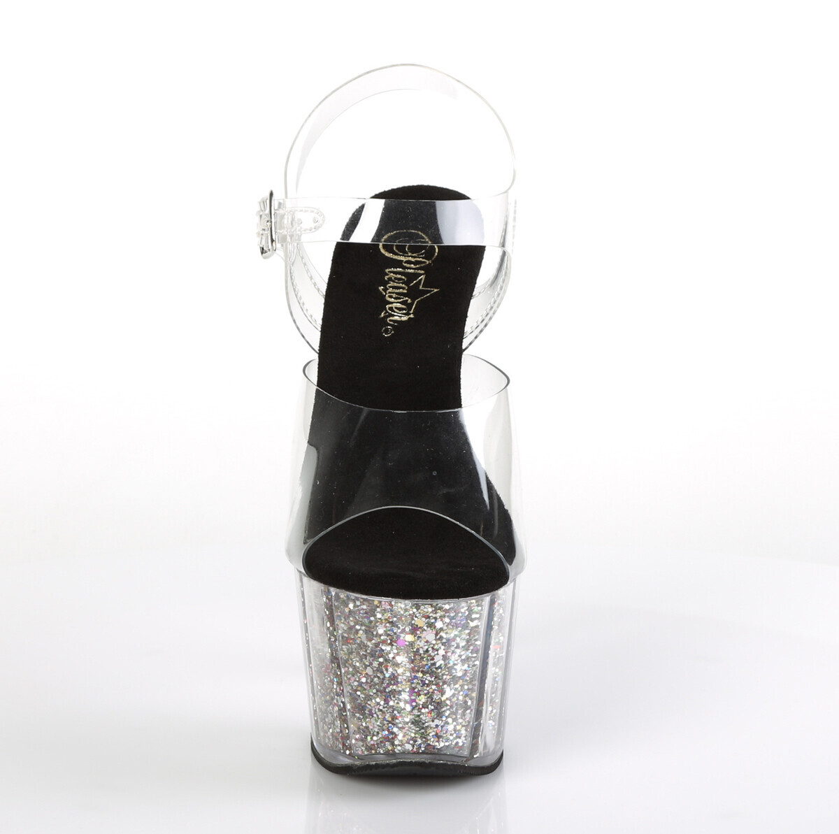 - PLEASER ADORE-708CG Women's 7" Heel Platform Ankle Strap Sandal W/ Glitter Shoes