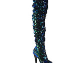 - PLEASER DELIGHT-3004 6" Heel Green Sequins Slouch Over The Knee Platform Boots 7