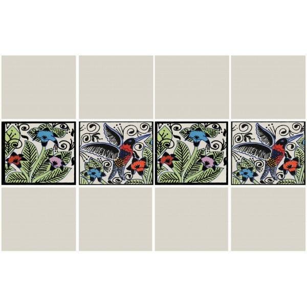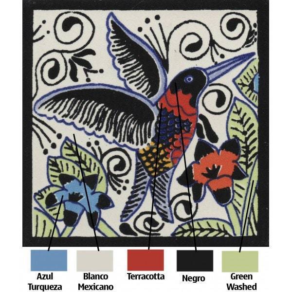 - POOL TILES Mexican Talavera Ceramic Frost Proof Handcrafted Tiles - Hummingbirds