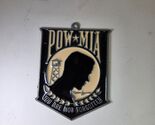 The POW MIA Sun Catcher, measuring approximately 3.25" x 4.25", is a collectible that serves as a reminder of those who have been captured or missing in action. This sun catcher, typically displayed in a sunny window, functions as a small tribute to honor and remember the sacrifices of military personnel. Its retro design and mid-century aesthetic make it a unique and sentimental piece for collectors or veterans' families.