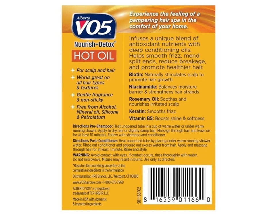 MOISTURIZING TREATMENT: Saturate your hair with VO5 Hot Oil Therapy to restore shine, silky softness, and hydration.