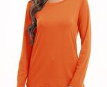 - PRIMODA Women's Long Sleeve Shirt Orange S Cotton Blend Crew Neck Basic