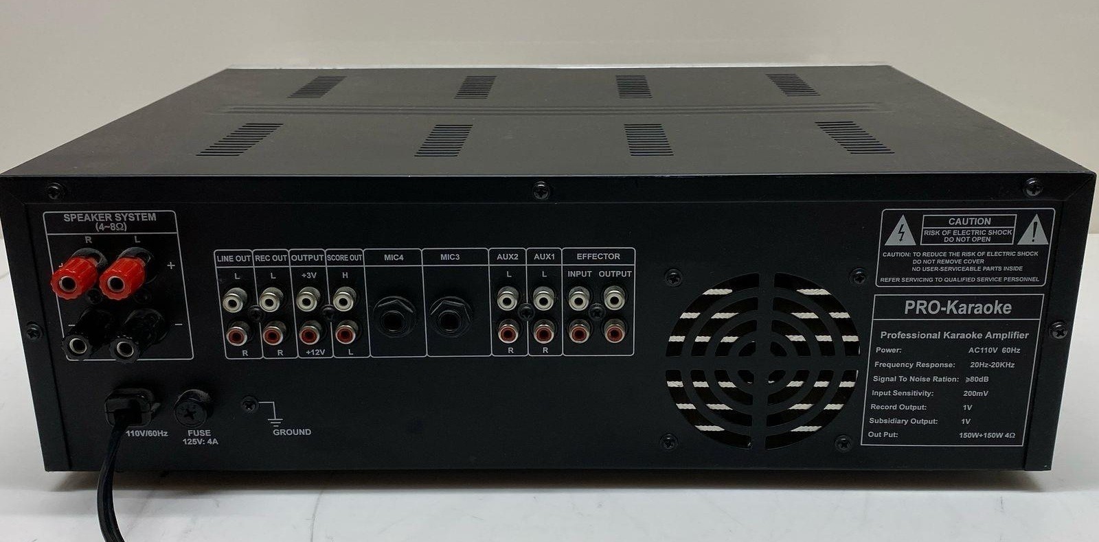Bring professional-quality sound to your karaoke nights with this PRO-Karaoke DM-8200W Digital Stereo Echo Mixing Amplifier. Perfect for home parties, karaoke setups, or small venues, this powerful unit delivers 150W + 150W output at 4?, clear vocals, and rich echo effects to enhance your performance.