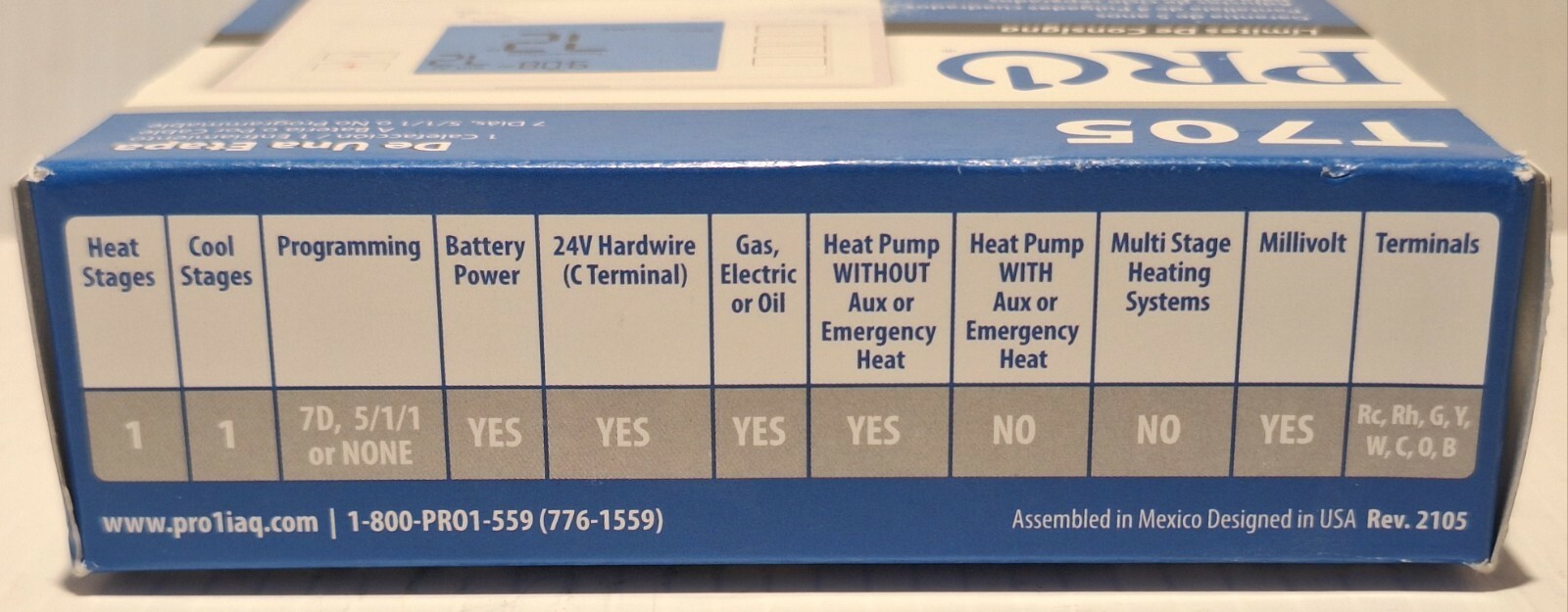 - PRO1 T705 Single Stage Programmable Digital Thermostat New