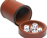 - PU Leather Dice Cup Set with Lid Dark Brown Felt Lining Quiet Shaker Cup Include