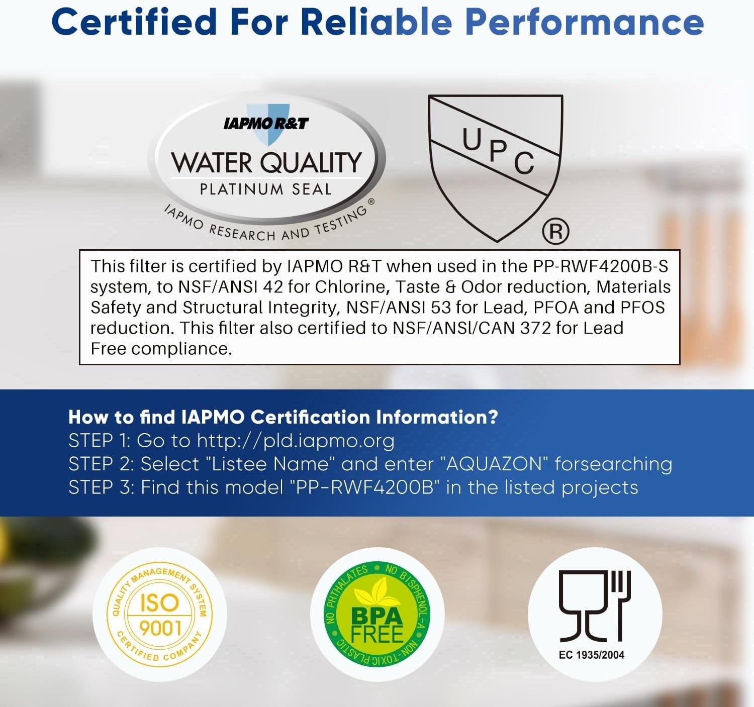 ?? Authoritative Certifications - This filter is certified against NSF/ANSI 53, 42 and 372 Lead-Free by NSF for Heavy Metal, filtering out 97.5% of Chlorine, 99.6% of Lead, 89.3% of Mercury and significantly improving water taste. It is also certified by BPA Free and Australian Water Mark. Only select products with authoritative certifications for your households.