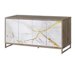 - Paavan Console Cabinet, White Marble Print Oak & Champagne Finish