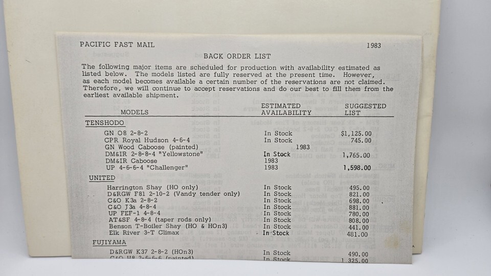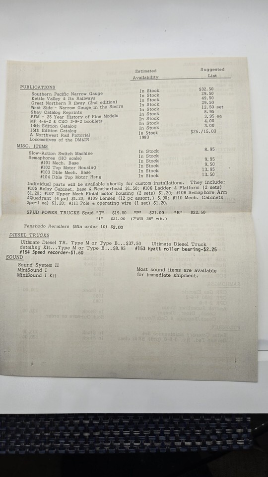 Bonus 1983 Back Order list.