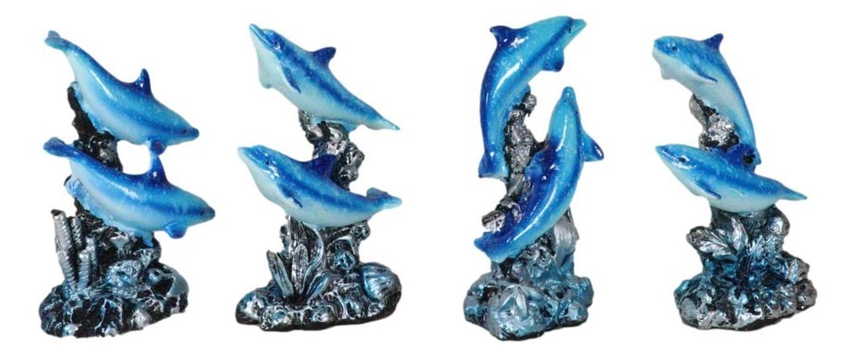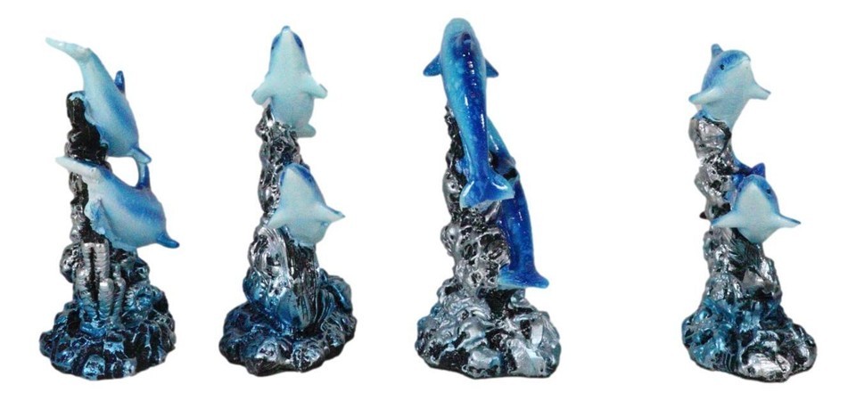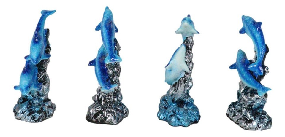 - Pack Of 4 Marine Sea Blue Dolphins Swimming By Waves And Coral Reef Figurines