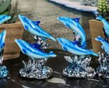 Pack Of 4 Marine Sea Blue Dolphins Swimming By Waves And Coral Reef Figurines