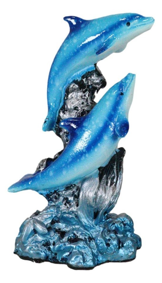 Ebros Pack Of 4 Marine Sea Blue Dolphins Swimming By Waves And Coral Reef Figurines