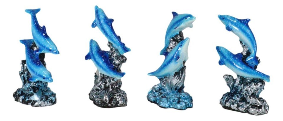 ? Decorate your aquariums, planters, fairy garden setup and such with these bright dolphins swimming by corals and waves. This listing is for a pack of 4 dolphin figurines as pictured. Each figurine comprises of a pair of dolphins in their unique postures.
