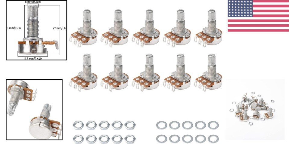 - Pack of 10 A500K Pots - Long Knurled Shaft Guitar Potentiometers for Electric...