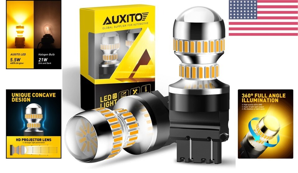 Pack of 2 3157 Amber Yellow LED Turn Signal Bulbs - 400% Brighter, Energy-Efficient