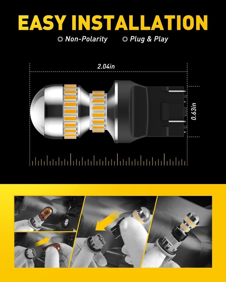 Experience Unmatched Brilliance: Illuminate the road with our 3157 Amber Yellow LED Turn Signal Bulbs, designed to be 400% brighter than standard bulbs, ensuring that your presence on the road is unmistakable.