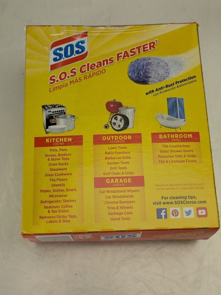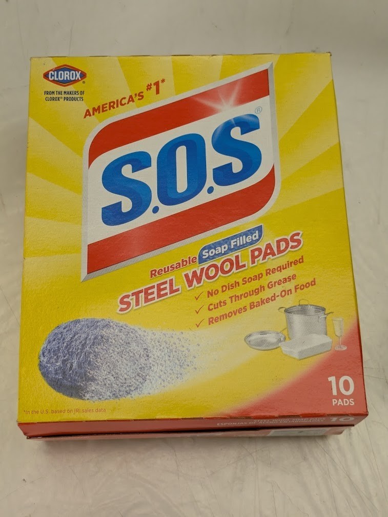 - Pack of 2 SOS Pads Steel Wool Soap Pads Removes Tough Mess Eliminate Soap Scum