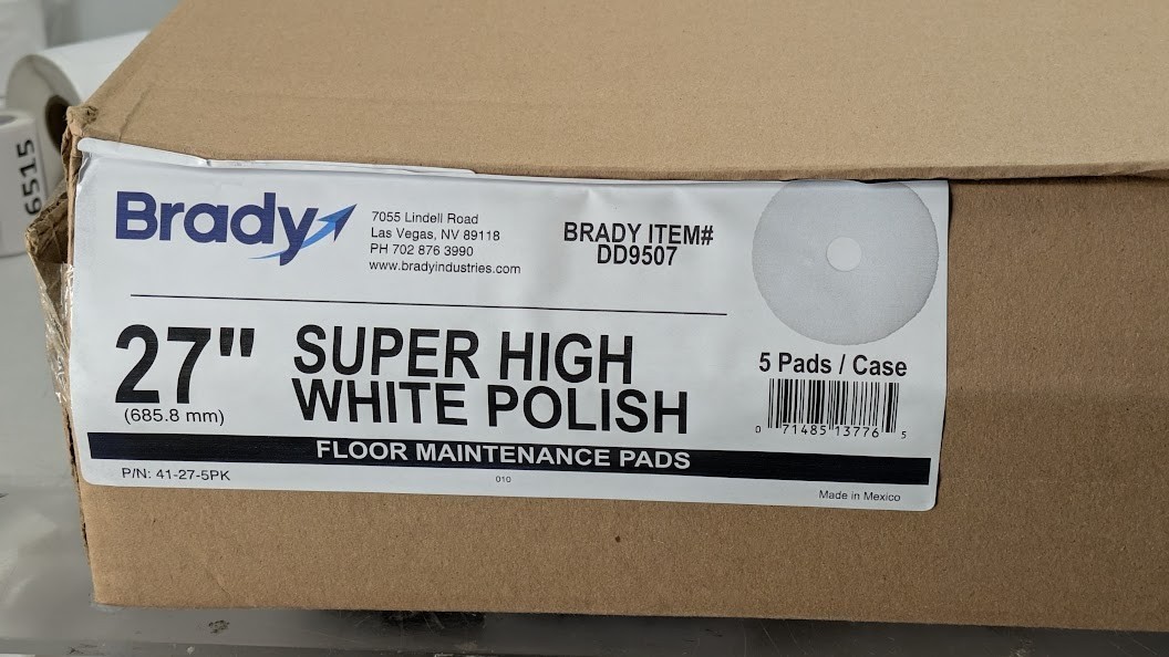 - Pack of 5 Brady 27 in. Super High White Polish Floor Maintenance Pads DD9507