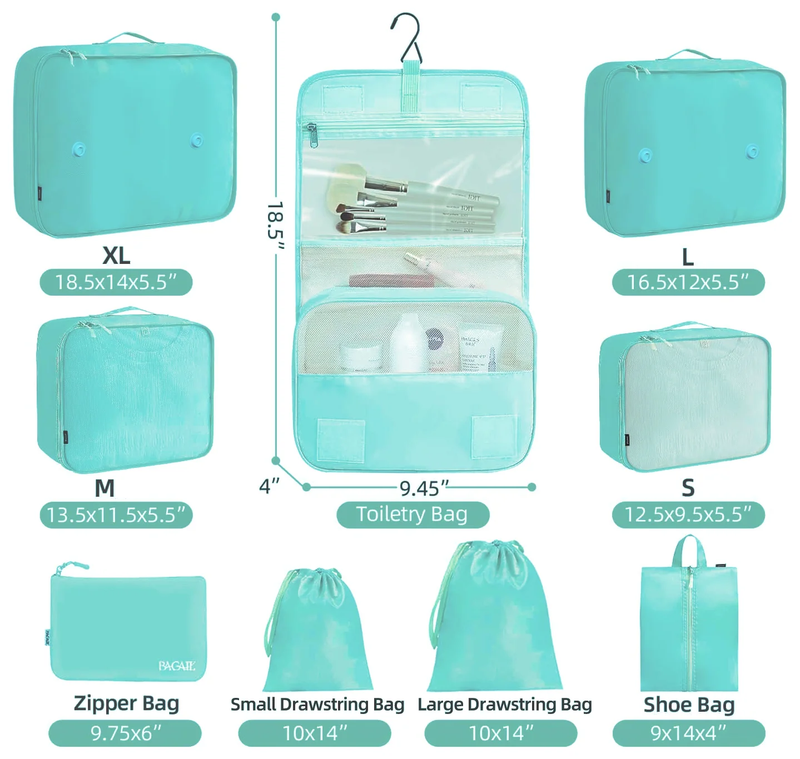 - Packing Cubes 9 Set, Travel Packing Organizers with Large Toiletries Bag for Clo