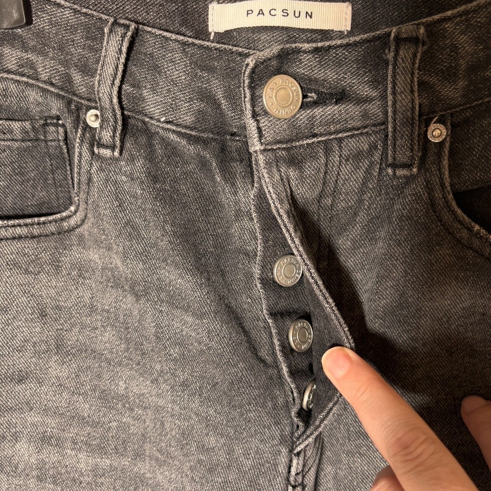 - Pacsun Dad Jean Faded Black Denim Jeans Wide Leg Slit Button Fly Relaxed Fit 25