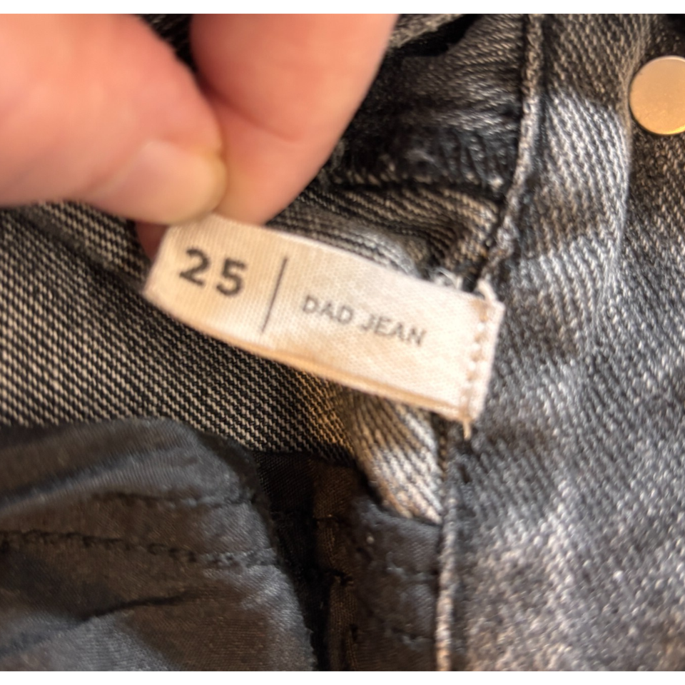 Pacsun Dad Jean Faded Black Denim Jeans Wide Leg Slit Button Fly Relaxed Fit 25
