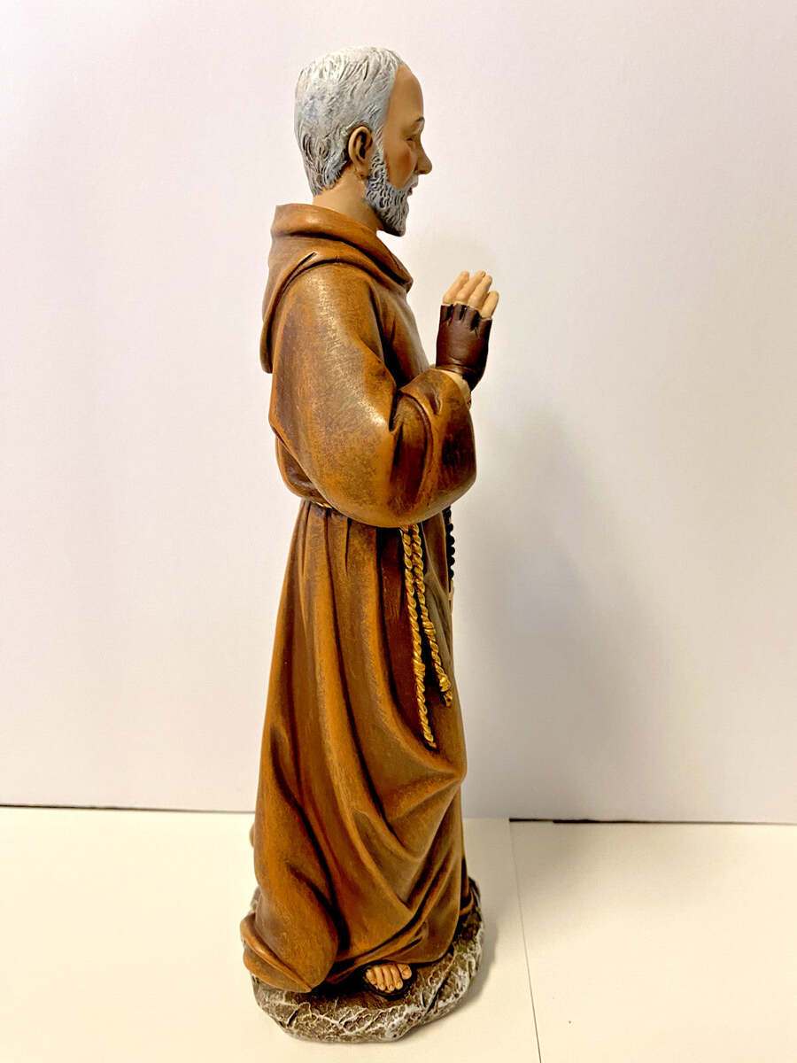 Your purchase is for a very nice statue of Saint Padre Pio. Bring this beautiful statue to your home as a reminder on how powerful this saint is. First priest to ever have a stigmata. He had a profound devotion to the rosary meditations, and many more attributes.