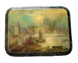 - Painted One Genre Russian Fedoskino Lacquer Box "Old Moscow Riverfront"- show...