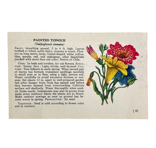 - Painted Tongue Garden Flowers 1940 Art Rudolf Freund Color Plate Print PCBG16