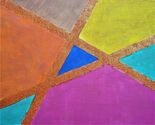 'Apricot Sparkle' by Carla Dancey. This is a painting of multi-colored triangles or triangular shapes separated by bands of apricot colored sparkle. This is an original acrylic artwork that is 11"x14" which is signed on the front as well as titled and signed on the back. The painting is on a strong, durable, child and pet friendly canvas board. It has two coats of gloss varnish applied for long lasting protection making it easy to wipe off fingerprints, etc. You will also receive a certificate of authenticity. Unframed but the painting comes with a hanger attached so you can hang it with or without a frame.