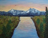 'Wilderness Landscape' by Carla Dancey. This is an original impressionist acrylic painting of a still water river reflecting the sunset. There is a mountain in the distance. The artwork is painted on an 11"x14" strong, durable canvas board and is signed on the front left hand lower corner. This artwork has two coats of varnish added for years of lasting protection making it easy to wipe off fingerprints, etc. You will also receive a certificate of authenticity. Unframed but the painting comes with a hanger attached so you can hang it without the additional expense of purchasing a frame unless you would like to buy one. Thank you for your interest in my art.