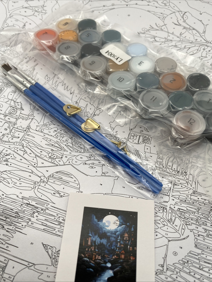 - Painting by Numbers for Adults Big Moon/Mountain House 16" x 20" Lot of 2